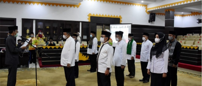 JUSINEWSLAMPUNG-Walikota Metro mengukuhkan Pengurus Masjid Taqwa Kota Metro periode 2021-2025 sebanyak 46 orang, sesuai dengan Keputusan Nomor 861/KPTS/SETDA/02/2020 tentang Pengurus Masjid Agung Taqwa Metro Periode Tahun 2021-2025, yang berlangsung di Aula Pemda Kota Metro, Kamis (28/01/2021).