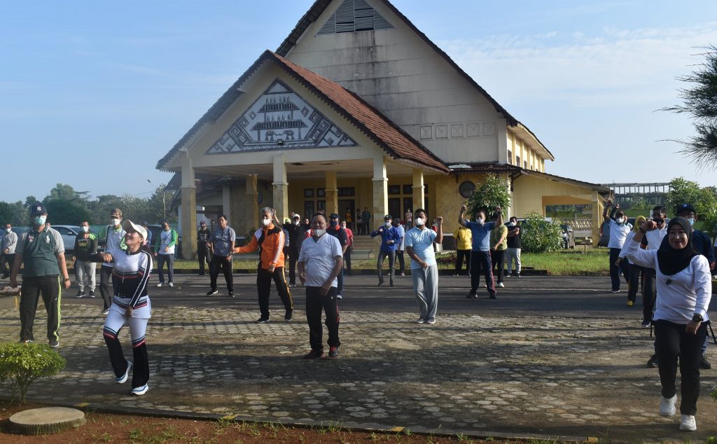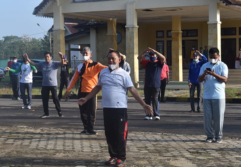 Sukadana – Pemerintah Kabupaten Lampung Timur mengadakan kegiatan senam pagi bersama seluruh Pegawai di lingkungan Pemerintah Kabupaten Lampung Timur bertempat di Halaman Aula Rumah DInas Bupati Lampung Timur (09/04/2021)Sebelum memulai senam Bupati Lamtim M Dawam Raharjo mengucapkan terima kasih atas kehadiran para Pegawai di lingkungan Pemerintah Kabupaten Lampung Timur dengan tetap menerapkan protokol kesehatan mulai dari menjaga jarak dan menggunakan masker.