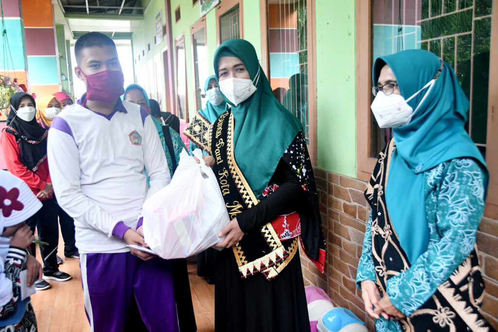 Ketua TP-PKK Kota Metro Silfia Naharani, melakukan kunjungi ke Sekolah Luar Biasa (SLB) Negeri dan swasta se-Kota Metro, dalam rangka Jumat berbagi, (04/06/2021).