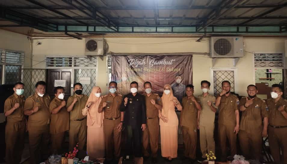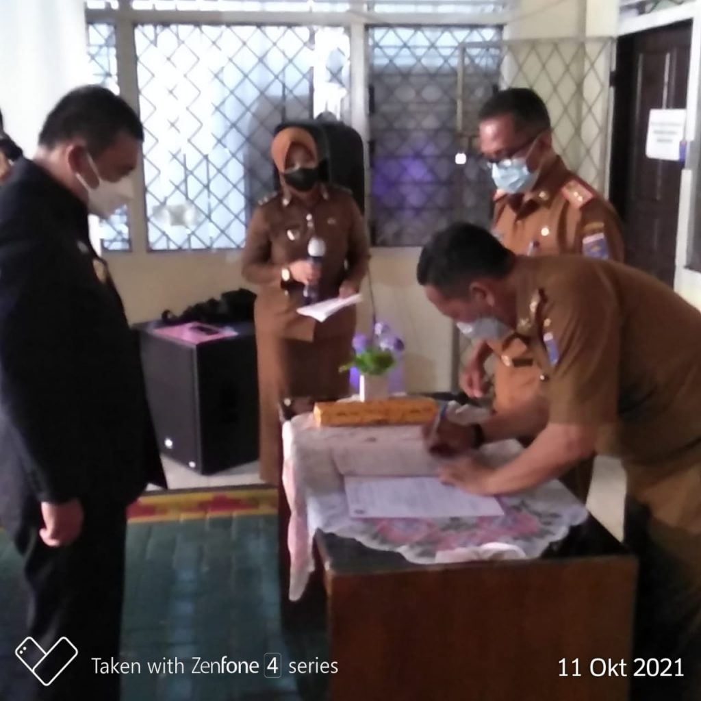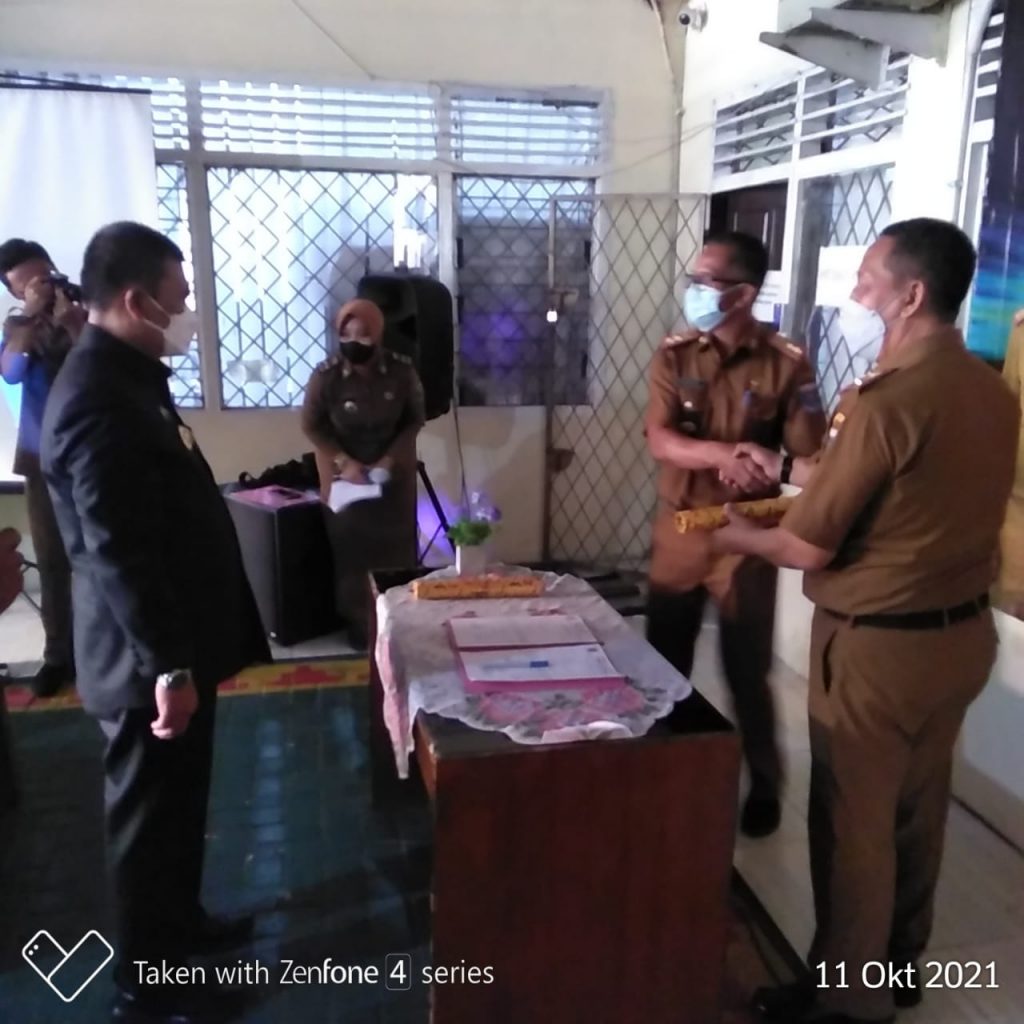 Agenda pisah sambut kepala Dinas Sosial Kota Metro dari Suwandi SIP,MM kepada Drs Rahmad Zainuddin M.Si yang dihelat di Kantor Dinas Sosial Kota Metro, Senin (11/10/2021), berlangsung dengan keharuan dan khidmat. Dengan tetap menerapkan protokol kesehatan seperti menggunakan masker, fasilitas cuci tangan serta menjaga jarak.