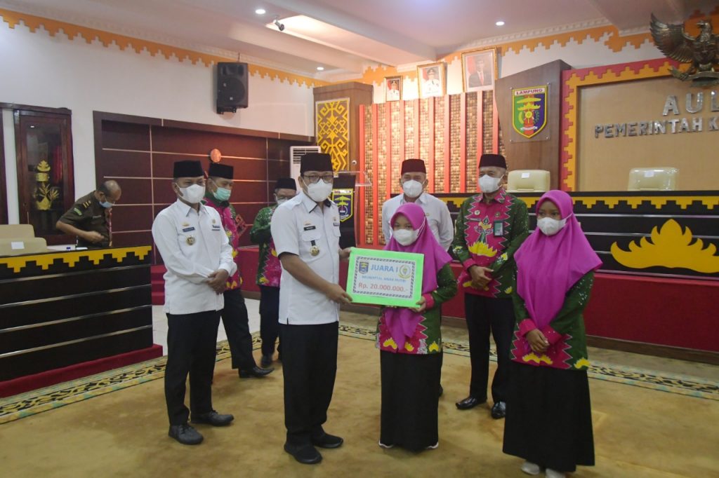 Pemerintah Kota Metro memberikan reward kepada para pemenang Lomba MTQ ke-48 tahun 2021, di Provinsi Lampung. Penyerahan reward dilakukan di Aula Pemerintah Kota Metro, Kamis (13/01/2022).