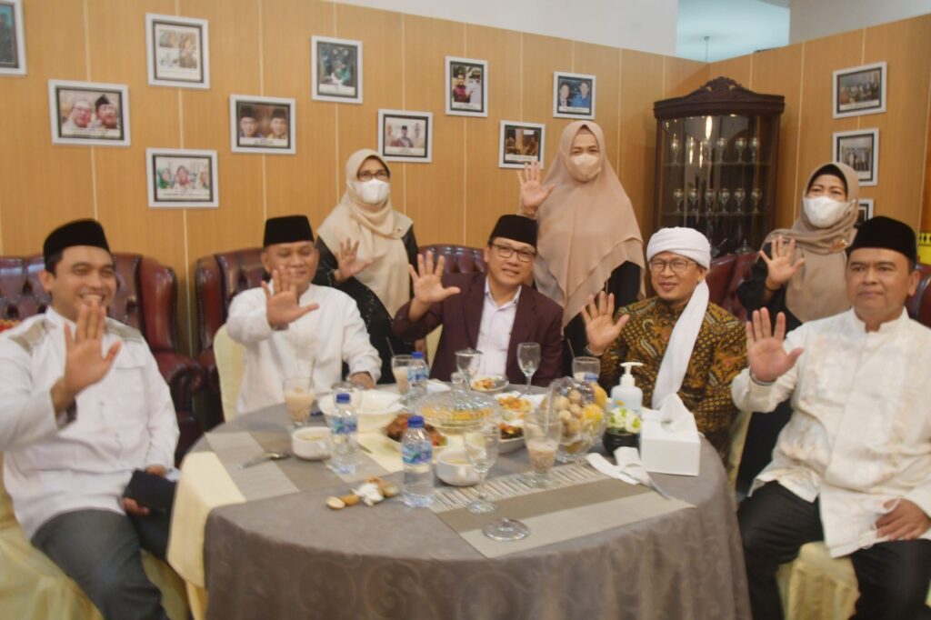 Walikota Metro, Wakil Walikota Metro dan Sekda Kota Metro menyambut baik kedatangan KH.Abdullah Gymnastiar atau yang biasa disapa Aa Gym, di Rumah Dinas Walikota, Selasa (25/01/2022).