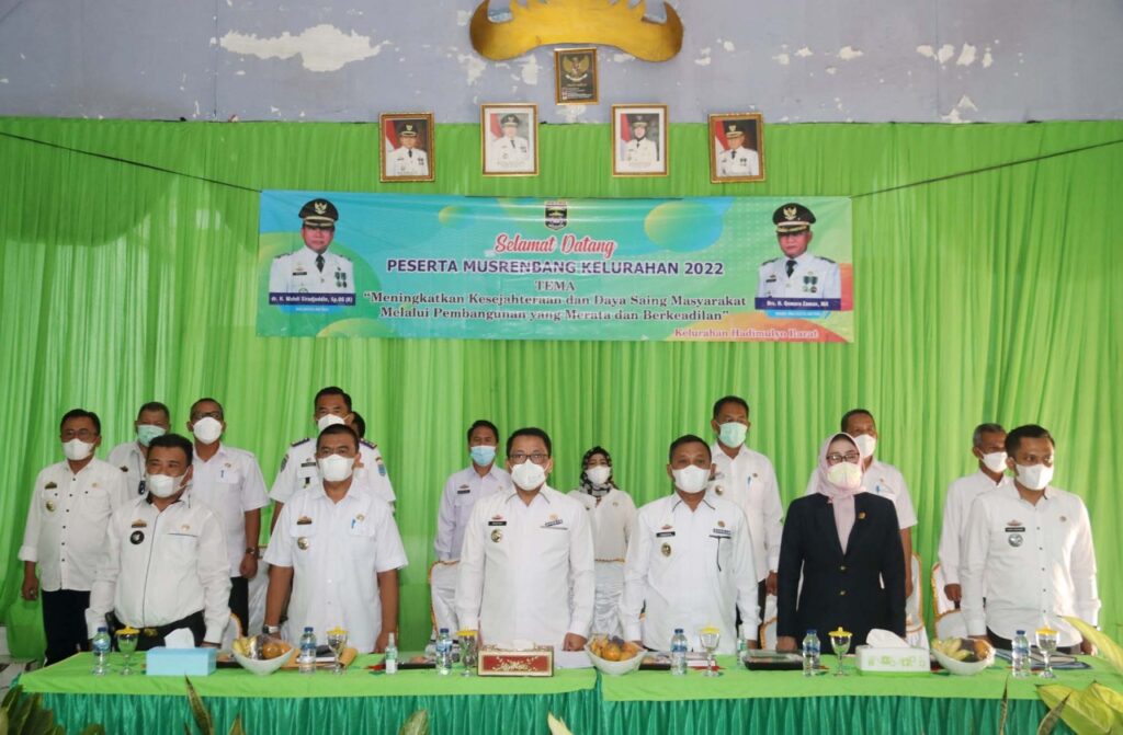 Bertempat di Aula Kelurahan Hadimulyo Barat, Metro Pusat, Walikota Metro Wahdi didampingi Wakil Walikota Metro Qomaru Zaman hadiri Musyawarah Rencana Pembangunan (Musrenbang) Kelurahan.