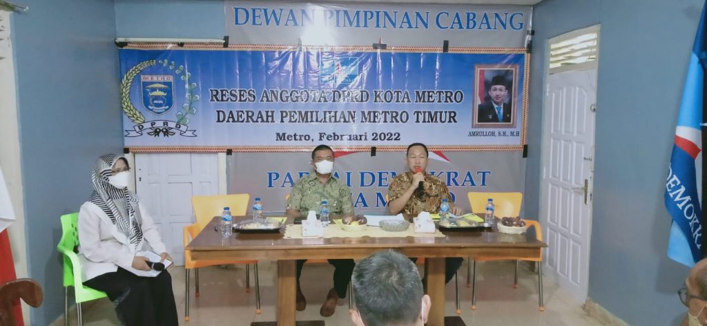 Metro – Sekretaris Komisi I DPRD Kota Metro, Amrulloh,S.H,M.H menggelar reses masa persidangan I tahun 2022, di kantor DPC Partai Demokrat Kota Metro, Kelurahan Yosodadi, Kecamatan Metro Timur.