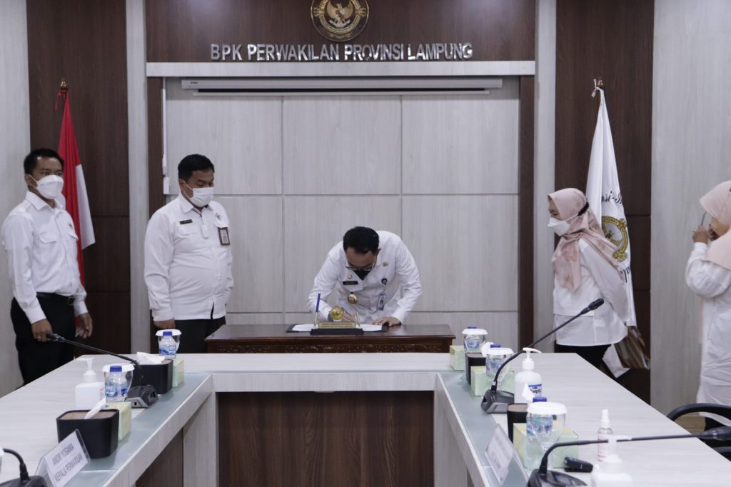 Bupati H. Raden Adipati Surya, S.H.,M.M Menghadiri Acara Penyerahan Laporan Keuangan Daerah (LKD) dan Penandatanganan Pakta Integritas Kepala Daerah Tahun 2022 di Kantor BPK Perwakilan Provinsi Lampung, Rabu (09/03/2022) bersama Inspektur Daerah Kabupaten, Dra. Yuliawati, M.M dan Kepala Badan Pengelola Keuangan dan Aset Daerah, Kesuma Anakori, S.E.,M.A.P, yang disambut langsung oleh Kepala BPK Perwakilan Provinsi Lampung, Andri Yogama.