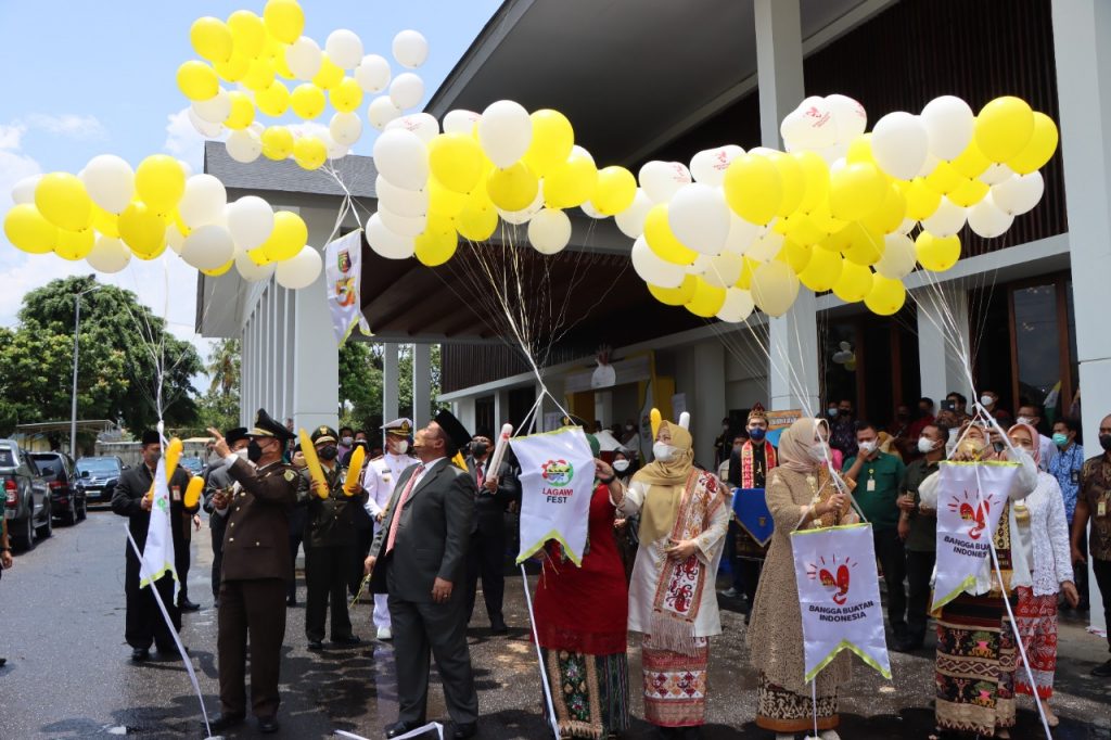 BANDARLAMPUNG—Peringati HUT Ke-58 Provinsi Lampung Gubernur Lampung Arinal Djunaidi lakukan Kick Off Gerakan Nasional Bangga Buatan Indonesia (BBI) Tahun 2022, di Mahan Agung, Rumah Dinas Gubernur Lampung, Bandar Lampung, Kamis (17/03)