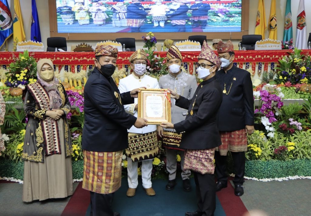 Gubernur Arinal juga mengucapkan terimakasih dan apresiasi pada jajaran Pemerintah Provinsi dan Bupati/Walikota se-Provinsi Lampung serta seluruh stakeholders (DPRD, Forkopimda, Tokoh Agama, Tokoh Masyarakat, Tokoh Budaya, Media, Industri, Perguruan Tinggi, LSM, dan segenap masyarakat Lampung), yang hadir dalam Rapat Paripurna Istimewa baik daring maupun luring, atas kerjasama yang baik untuk mewujudkan pembangunan di Provinsi Lampung pada tahun 2021 ini.