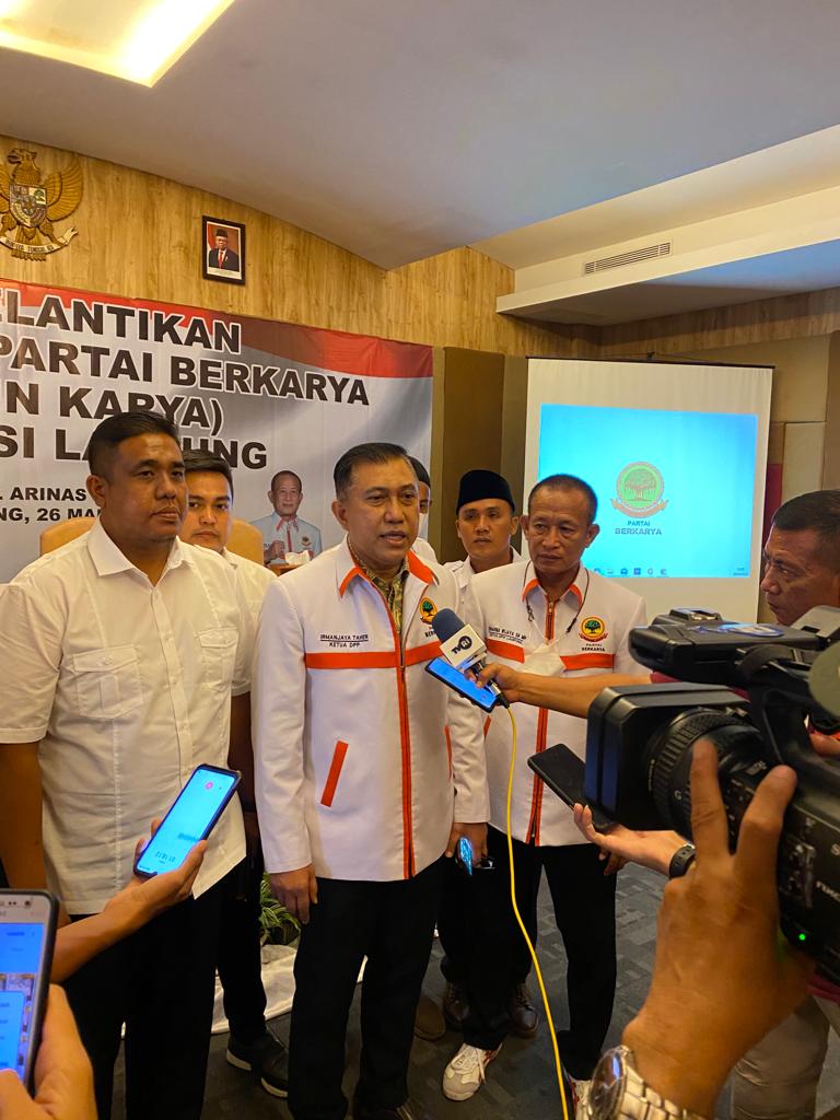Bandar Lampung – Ketua Dewan Perwakilan Wilayah (DPW) Partai Beringin Karya (Berkarya) Provinsi Lampung, Darma Wijaya S.H M.H yakin capai target pada pemilu 2024 nanti. Ia targetkan minimal dua nahkoda untuk Dewan Perwakilan Rakyat (DPR) RI, 9 DPR Provinsi dan 40 DPR di Kab/Kota.