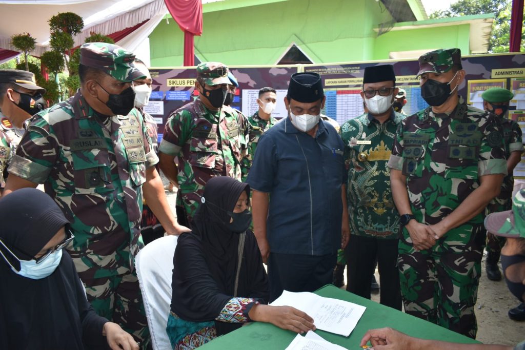 Aster Panglima TNI juga menyampaikan kepada para peserta penerima bantuan jikalau ada ibu ibu yang ingin divaksin juga di sediakan tempat vaksin disini, ” Sekali lagi kami mohon maaf karena ini bulan puasa, tetapi bapak ibu tetap ada pembagian snack karena ini bagian dari Program, silahkan dibawa pulang ” tutup Aster Panglima TNI. (reza)