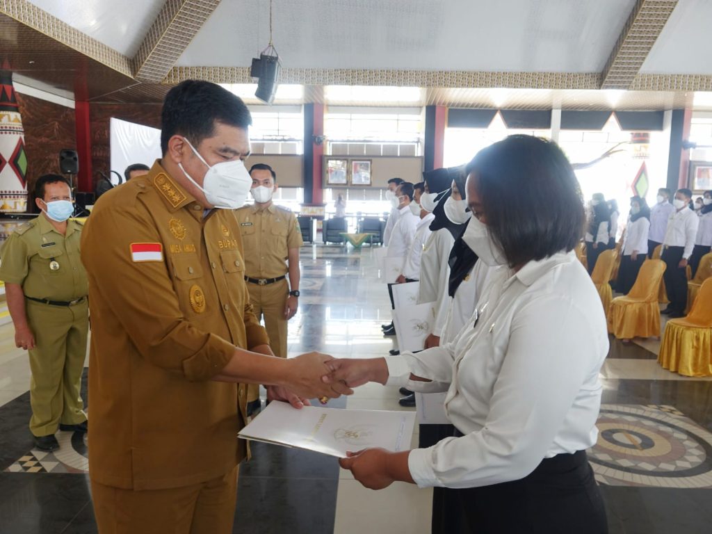 Bupati Lampung Tengah Musa Ahmad memberikan Petikan Keputusan Bupati Lampung Tengah Tentang Pengangkatan Calon Pegawai Negeri Sipil di Lingkup Pemerintah Kabupaten Lampung Tengah pada hari selasa 19 April 2022 bertempat di Sesat Agung Nuwo Balak. Dalam kesempatan tersebut turut hadir Asisten Administrasi Umum, Kepala BKPSDM serta CPNS Tahun Formasi 2021.