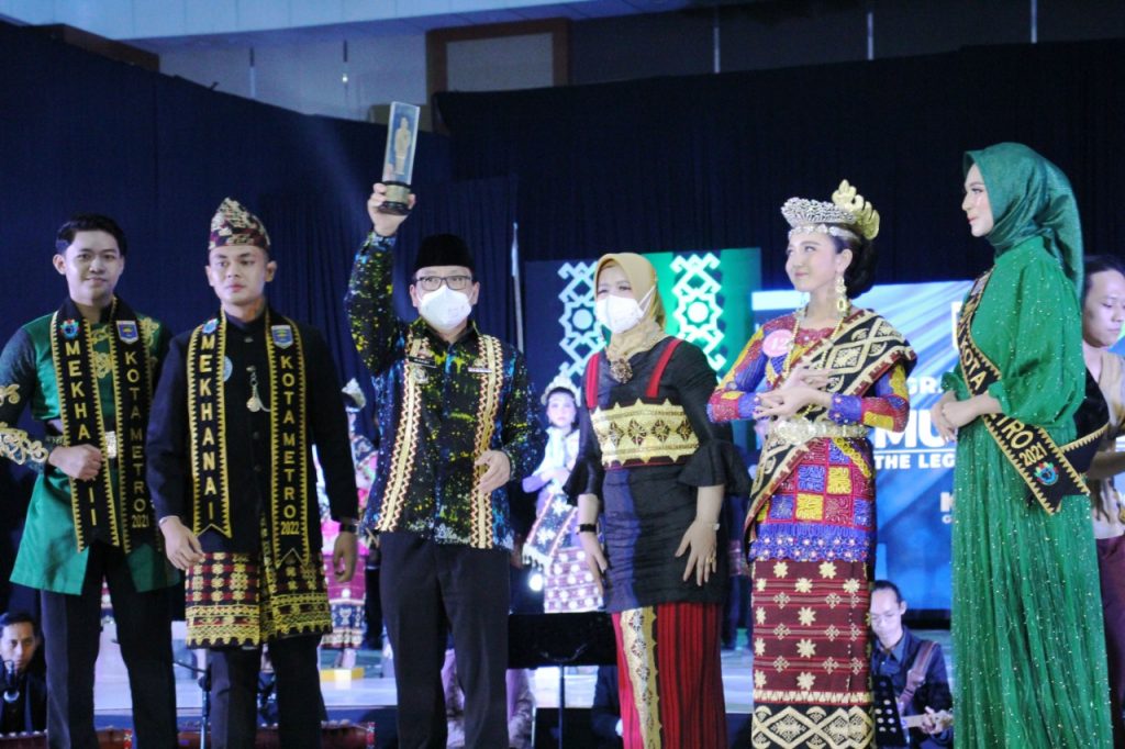 Putra dan Putri daerah terbaik di Kota Metro mengikuti Grand Final Pemilihan Muli Mekhanai 2022 Kota Metro, dengan tema ‘The Legacy Of Culture and Heritage’, Selasa (31/05/2022).