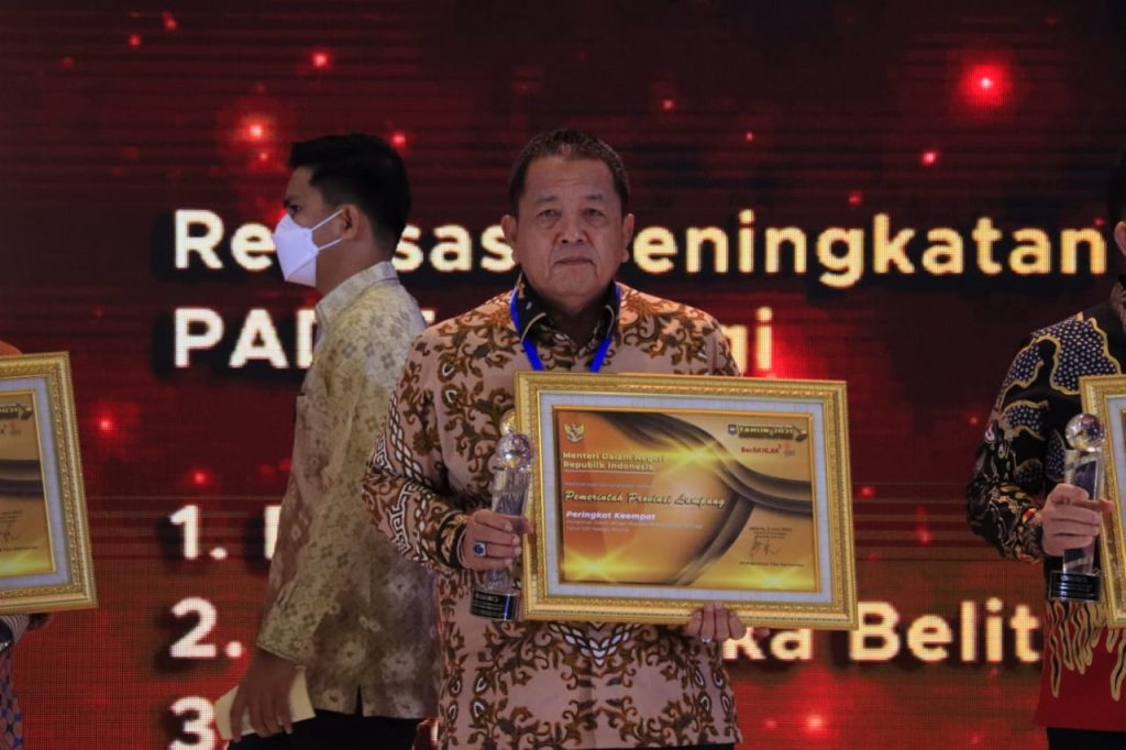 Penghargaan diberikan secara langsung oleh Menteri Dalam Negeri Republik Indonesia Muhammad Tito Karnavian kepada Gubernur Arinal Djunaidi atas kinerja keuangan Pemerintah Provinsi Lampung pada tahun anggaran 2021.