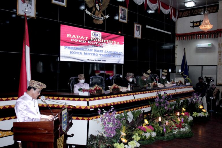 Pada usia 85 tahun ini Kota Metro telah menunjukkan jati diri sebagai kota yang aman, kondusif, dan nyaman di tengah-tengah kemajemukan masyarakat. Hal tersebut disampaikan Walikota Metro Wahdi dalam Sidang Paripurna DPRD Kota Metro Peringatan HUT Kota Metro ke-85 Tahun 2022, Kamis (09/06/2022).