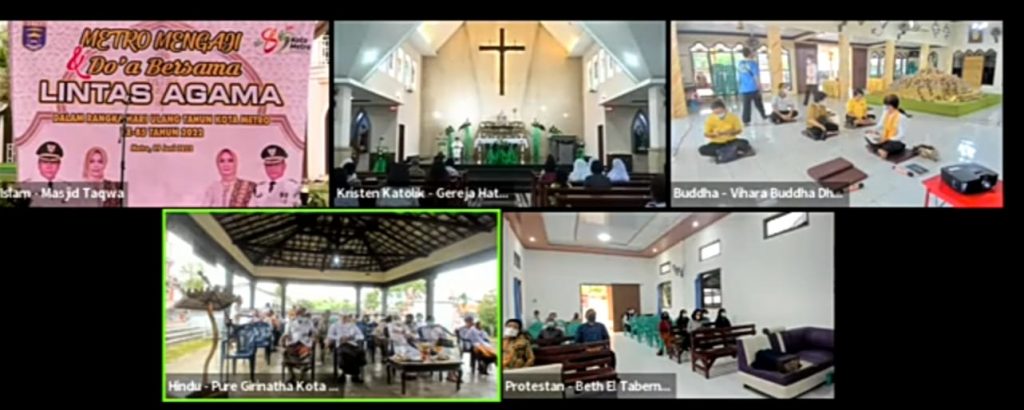 Pemerintah Kota Metro gelar Doa Bersama Lintas Agama dalam rangka HUT ke-85 Kota Metro Tahun 2022. Doa lintas agama ini dilakukan bersama-sama secara Hybrid Meeting oleh masing-masing agama yang berlangsung di rumah ibadah masing-masing, Kamis (09/06/2022).