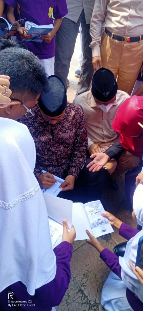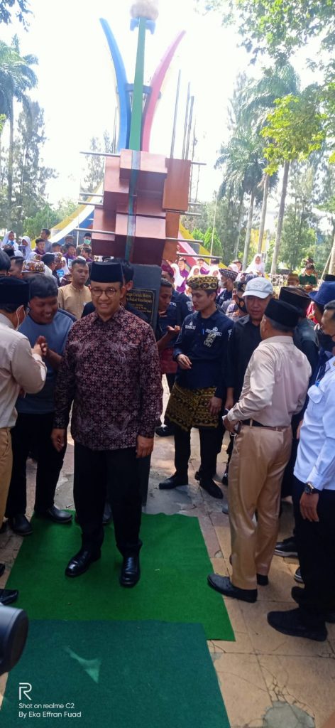 Tampak Wakil Walikota menyapa tiap peserta pawai yang melintasi sepanjang jalan yang telah menjadi rute perjalanan Pawai Budaya HUT Kota Metro ke 85 tahun. Ditempat yang sama juga Kota Metro mendapat kunjungan Gebernur DKI Jakarta Anies Beswedan dan sekaligus Meresmikan berdirinya Monumen Seni Instalasi Sakai Sambayan Taman Merdeka Kota Metro, Gubernur DKI Jakarta, Anies Baswedan juga melaunching buku karya siswa-siswi SD Muhammadiyah Metro Pusat, Launching buku yang ditandai dengan penandatanganan oleh Anies Baswedan itu, berlangsung di Taman Merdeka Kota Metro.(eef)