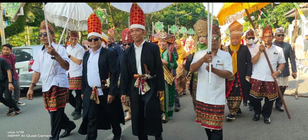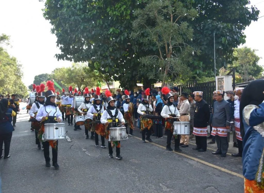 Wakil Walikota Metro Drs. H. Qomaru Zaman, MA melepas rombongan dari peserta Pawai Budaya dalam rangka HUT Kota Metro ke-85 tahun, di depan Rumah Informasi Sejarah (RIS) Kota Metro, Jumat (10/06/2022).