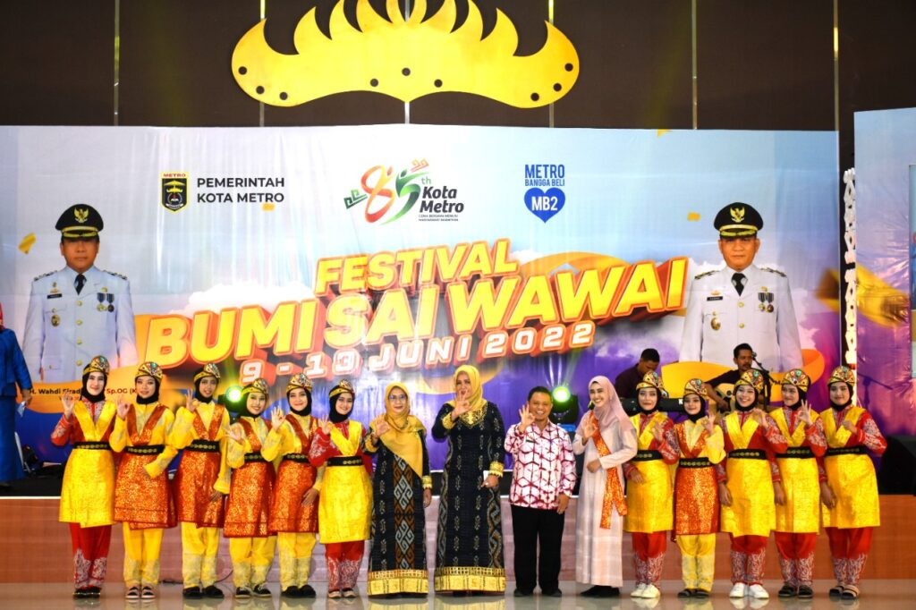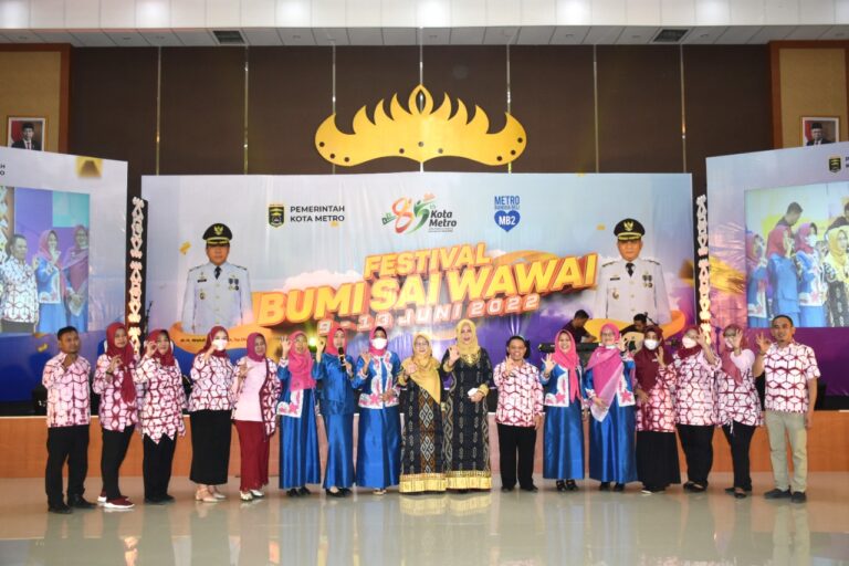 Ketua Harian Lembaga Seni dan Qasidah Indonesia (LASQI) Kota Metro Asih Kusminah Qomaru buka kegiatan Penampilan Bintang Vokalis dan Qasidah Lasqi tahun 2022 yang diselenggarakan oleh Bidang Kesra, dalam acara Festival Bumi Sai Wawai, Sabtu (11/06/2022).