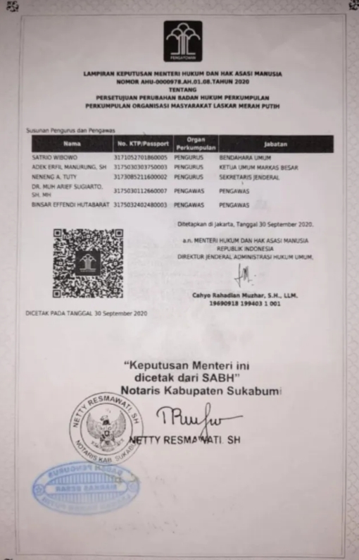 Irawan Pula Menambahkan Bahwa Seluruh Ormas Atau Lembaga Yang Dibentuk Sebagai Suatu Perkumpulan Yang Telah Disahkan Oleh Kemenkumham RI Melalui Putusan Administrasi Hukum Umum (AHU) Maka Setiap Pengurus Ormas Harus Dapat Membuktikan: