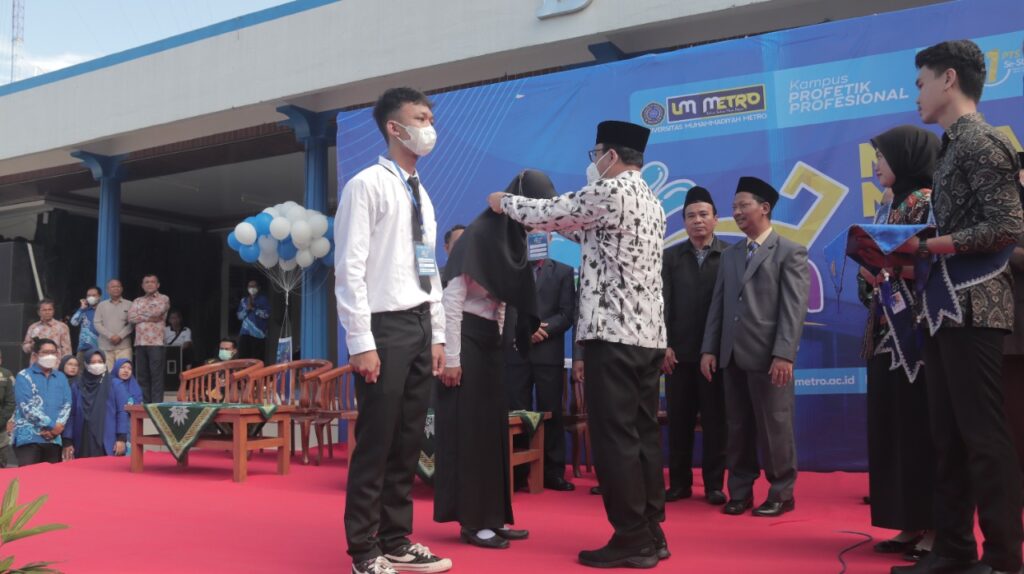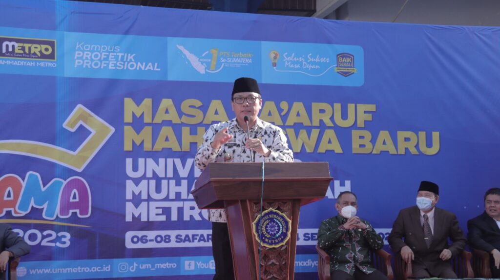 Walikota Metro Wahdi menghadiri pembukaan Masa Ta’aruf Mahasiswa Baru (Mastama) UM Metro Tahun 2022/2023, di Halaman Kampus Universitas Muhammadiyah (UM) Metro, Jumat (02/09/2022).