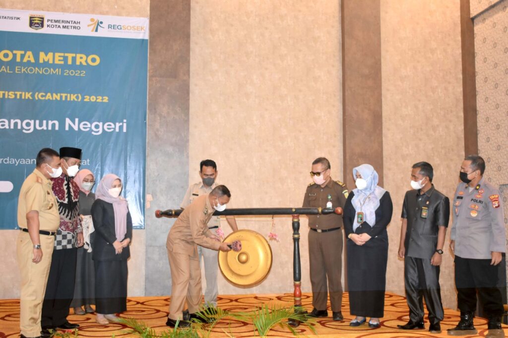 Wakil Walikota Metro Qomaru Zaman, membuka kegiatan Sosialisasi dan Koordinasi Registrasi Sosial Ekonomi serta Pencanangan Kelurahan Cinta Statistik (CANTIK). Kegiatan yang diselenggarakan oleh Badan Pusat Statistik (BPS) Metro tersebut berlangsung di Hotel Aidia Grande Hotel, Selasa 27/9/2022.