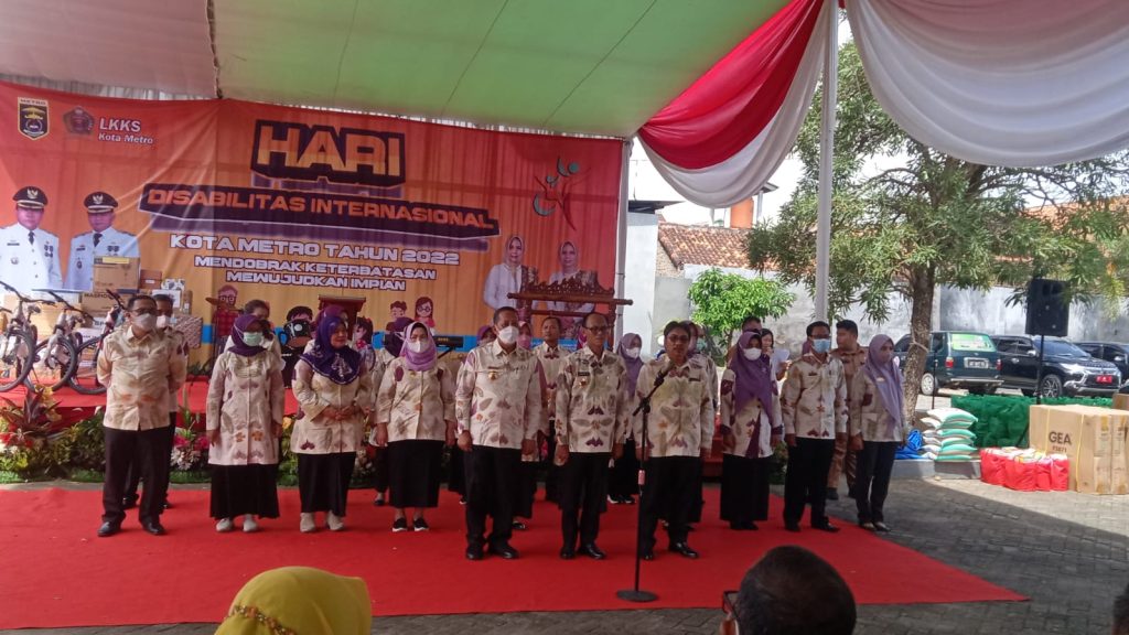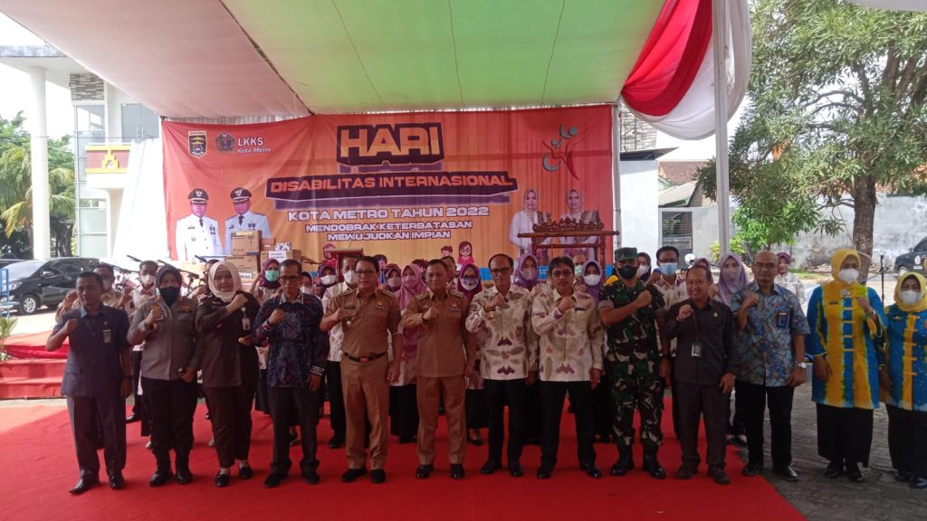 Walikota Metro dr. H. Wahdi Siradjuddin, Sp.OG (K) menyampaikan apresiasi atas terlaksanannya Hari Disabilitas Internasional (HDI) Tahun 2022 yang dideklarasikan pada tanggal 3 Desember 1992. peringatan HDI merupakan bagian dari Integral dalam Implementasi Pancasila, UUD 1945, UU No. 39 Tahun 1999 tentang Hak Asasi Manusia, serta UU No. 8 Tahun 2016 tentang Penyandang disabilitas yang mengambarkan bahwa setiap warga negara memiliki berbagai hak yang harus dilindungi dan dimajukan melalui pembangunan kesejahteraan sosial termasuk penyandang disabilitas.