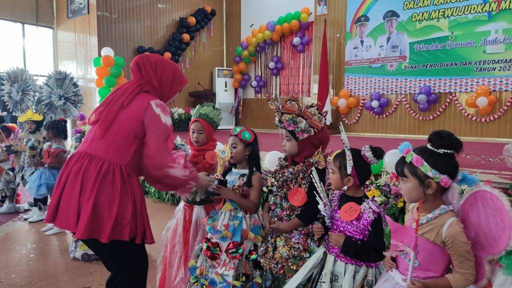 Pada acara yang turut dihadiri oleh kepala/unsur Satuan Kerja Perangkat Daerah, Pimpinan Kecamatan Blambangan Umpu, Ketua Dharma Wanita Persatuan, Ny. Vorian Melita Saipul, Ketua Pokja Bunda PAUD Kabupaten Way Kanan, Organisasi Mitra PAUD, HIMPAUDI, GOPTKI, IGTKI dan IGRA Kabupaten Way Kanan sera Bunda Paud Kecamatan Blambangan Umpu, juga dilaksanakan kegiatan Fashion Show Modifikasi bahan daur ulang (daun, plastic, kertas), Tari Kreasi, Senam Sentuhan, Mendongeng dan Pembuatan APE Bahan Daur Ulang/Bahan Alam. (adi)