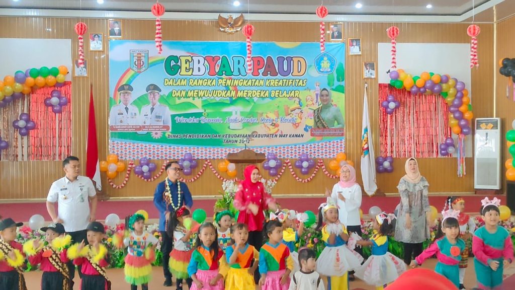 Kegiatan yang diikuti sebanyak 135 orang PAUD dari 15 Kecamatan, dilaksanakan dengan tujuan Meningkatkan kreatifitas peserta didik dan Guru PAUD, Sebagai upaya mewujudkan Merdeka Belajar pada Satuan PAUD di Kabupaten Way Kanan, Pada periode keemas an bila anak distimultan sejak dini, maka akan ditemukan potensi yang paling baik/unggul dalam dirinya, serta PAUD merupakan salah satu kunci dalam menyiapkan SDM yang berkarakter dan memiliki kecerdasan komprehensif.