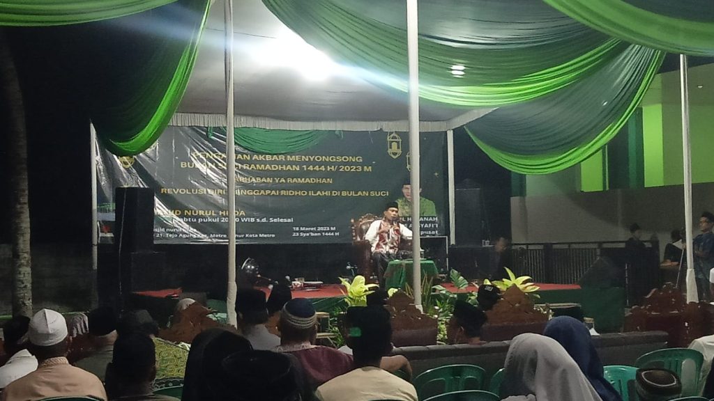 Dalam rangka songsong Ramadhan 1444 Hijiriah/2023 Masehi Masjid Nurul Huda mengadakan pengajian akbar dengan penceramah Ustad Kh. Jamal Idrus Assyafi’i dengan tema “Revolusi diri Menggapai Ridho Ilahi Di Bulan Suci”. Minggu 19/03/2023