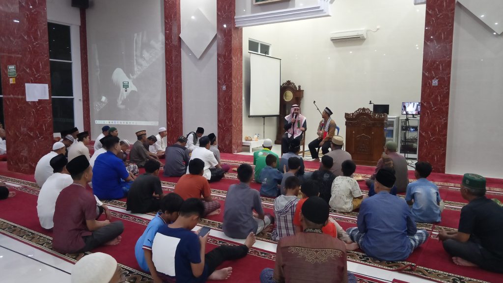 Selain bersilaturahmi bersama warga Perumnas JSP, Syekh Ahmad Omar Khayri Taqatqeh yang berkelahiran tahun 1997 ini juga membagikan cendara mata berbentuk slayer.