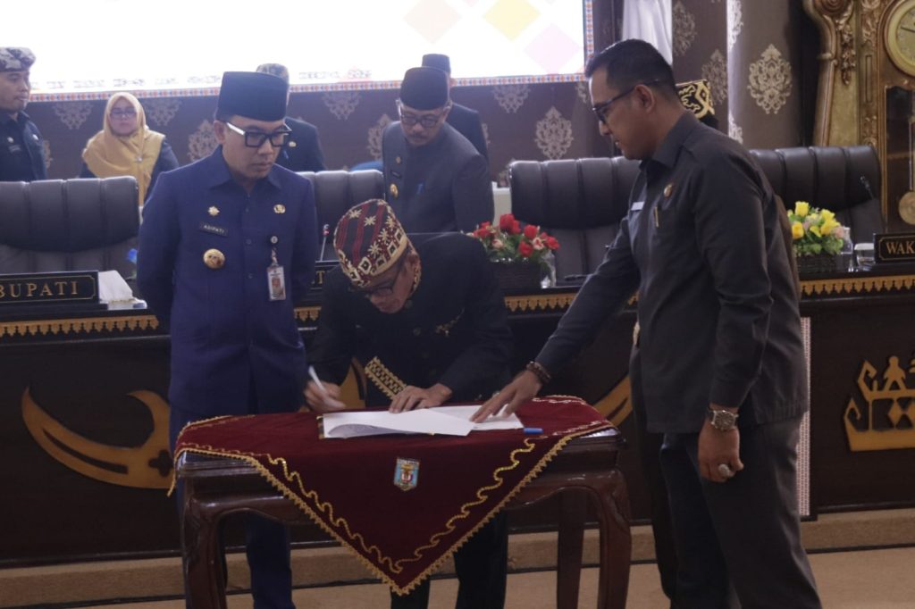 Bupati H. Raden Adipati Surya, S.H.,M.M menghadiri Rapat Paripurna Penyampaian Rekomendasi DPRD Kabupaten Way Kanan Terhadap Laporan Keterangan Pertanggungjawaban (LKPJ) Kepala Daerah Tahun Anggaran 2022 di Ruang Buay Bahuga DPRD Kabupaten Way Kanan, Kamis (27/04/2023).