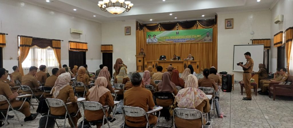 Kota Metro – Upaya peningkatan integritas serta menanamkan nilai pada kinerja pegawai, Pemerintah Kota Metro Provinsi Lampung melalui pihak Badan Kepegawaian dan Pengembangan Sumber Daya Manusia (BKPSDM), mengadakan kegiatan Internalisasi Kode Etik PNS dengan peserta segenap PNS lingkunga Pemkot setempat.