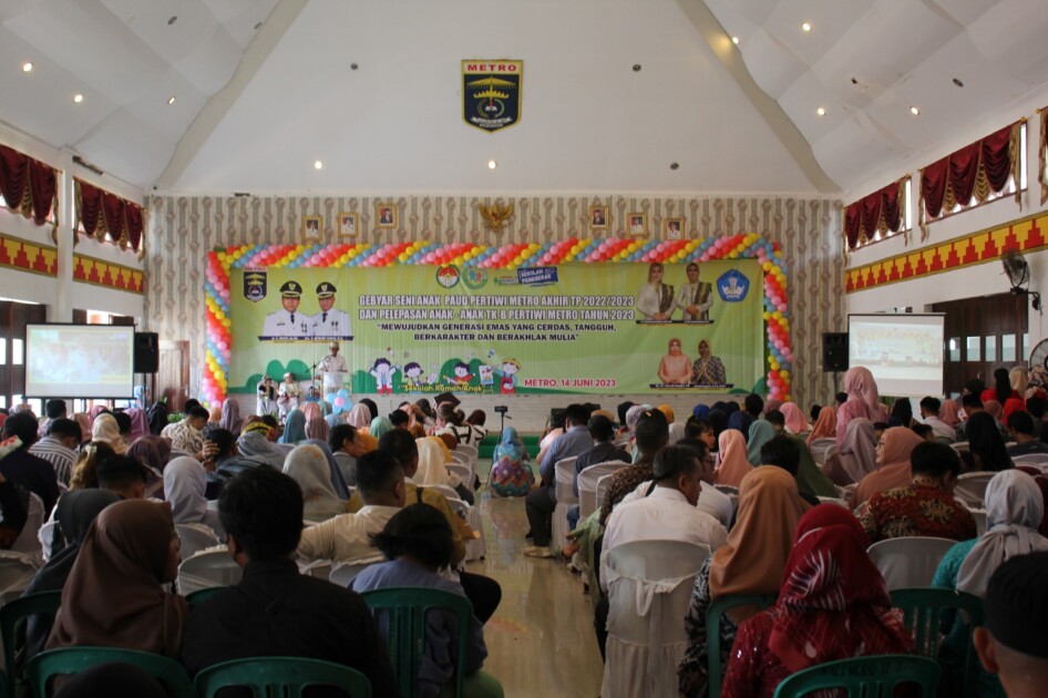 Pemerintah kota Metro mengadakan acara Gebyar Seni anak – anak Paud Pertiwi Metro, sekaligus Pelepasan anak- anak Tk-B Pertiwi berlangsung di Wisma Haji Al – Khairiyah Metro, Rabu (14/06/2023).