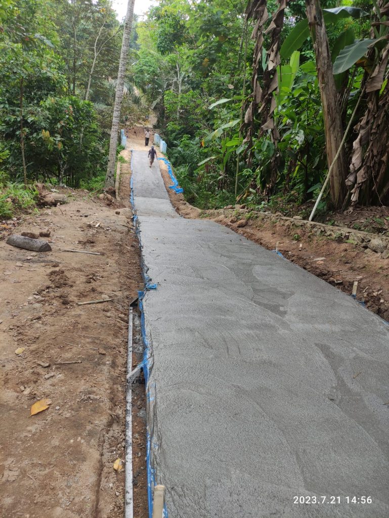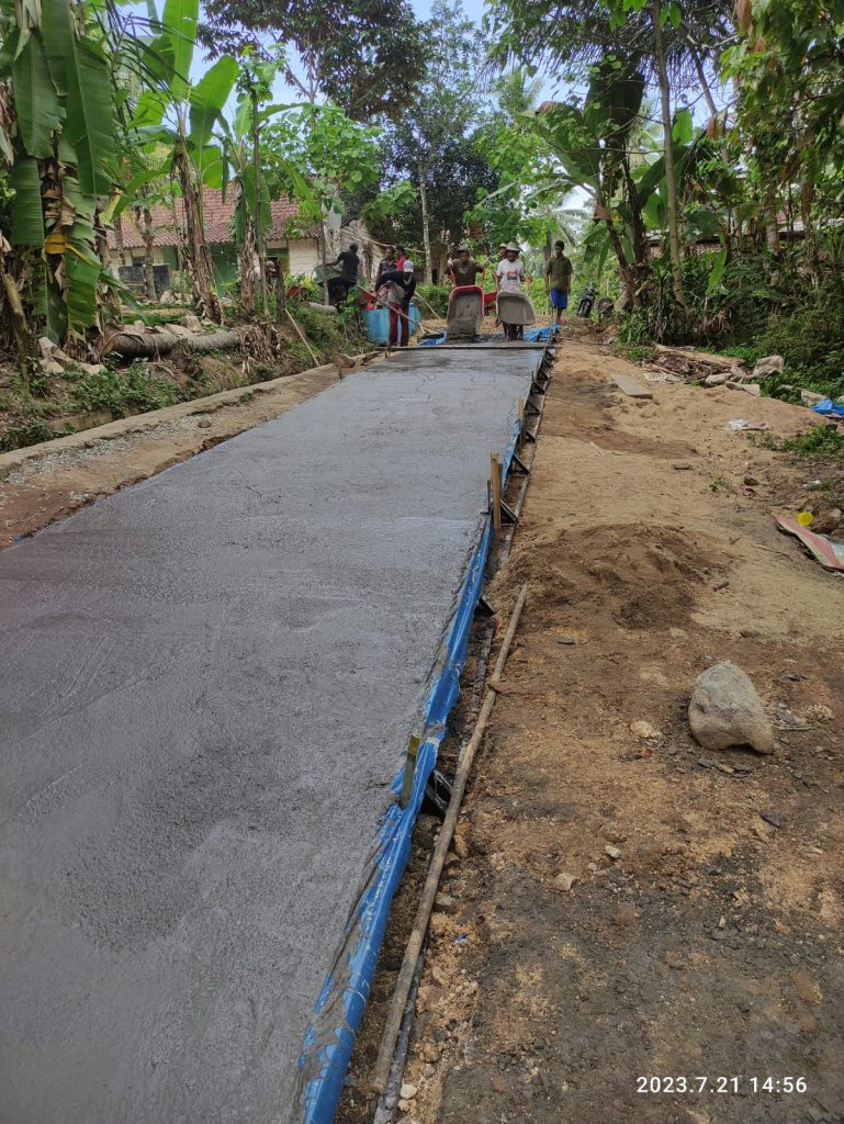 Sukses merealisasikan pembangunan jalan rabat beton dengan volume, 350 m, Lebar 2 m, dan tinggi 15 Cm, yang berlokasi di Dusun 01 dan 02, Kampung kota batu tahap ke dua.