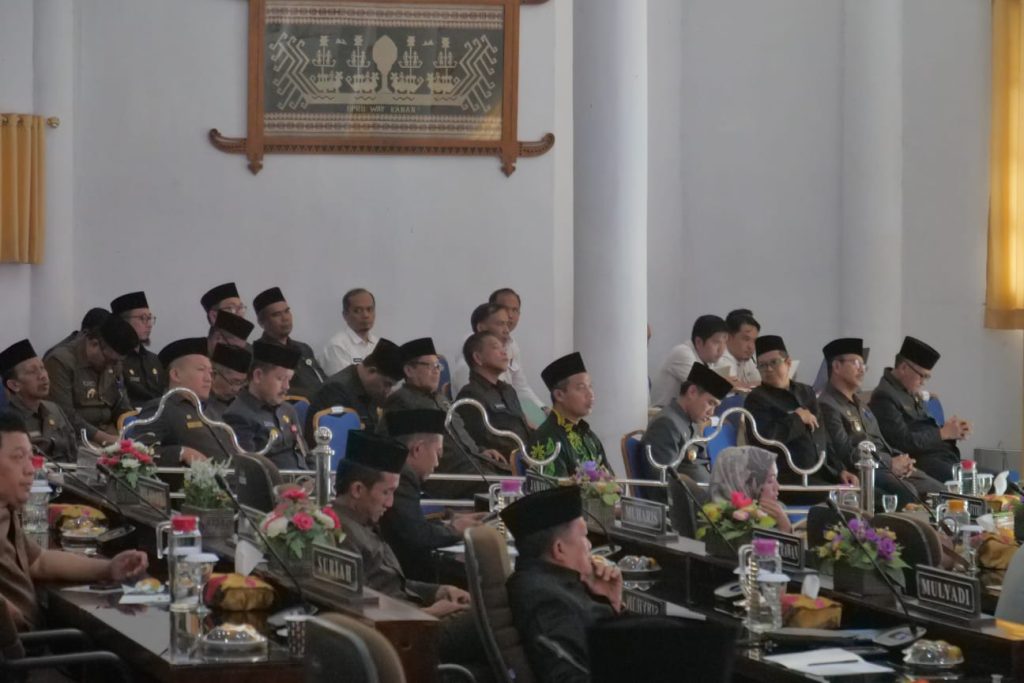 Bupati H.Raden Adipati Surya, S.H.,M.M bersama Wakil Bupati Drs. H. Ali Rahman, M.T menghadiri Rapat Paripurna DPRD Way Kanan Penyampaian Rancangan Peraturan Daerah Tentang Perubahan APBD Tahun Anggaran 2023 di Ruang Buway Bahuga DPRD Way Kanan, Kamis (10/08/2023).