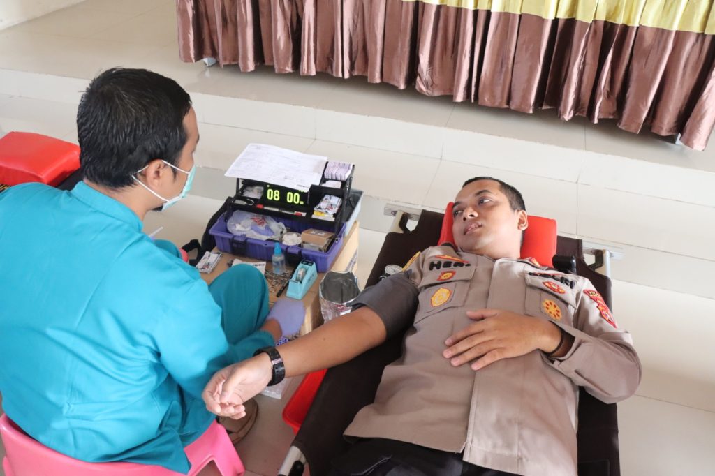 Dalam kegiatan donor darah kali ini Polres Metro melalui Si Dokkes bekerja sama dengan PMI Kota Metro sebagai petugas pelaksana yang diawali screening hingga pengambilan darah.