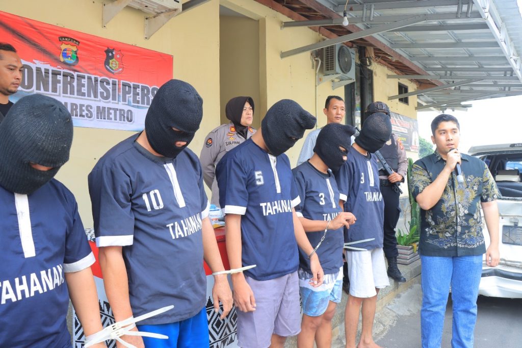 Bertepatan saat itu juga tim tekab 308 presisi Polres Metro yang sedang melakukan hunting C3 di daerah Kec. Metro Selatan melihat ada keributan dan langsung berhenti namun seketika itu beberapa orang yang ada di lokasi melarikan diri dan ada juga hendak kabur dengan mengendarai mobil, namun tim tekab 308 dengan sigap menghadang mobil tersebut dan saat itu ada salah seorang terduga pelaku berada dibelakang mobil yang hendak kabur sehingga orang tersebut tertabrak bagian belakang mobil pelaku akibatnya mengalami luka dibagian kaki. Kemudian tim tekab 308 berhasil mengamankan 6 (enam) orang terduga pelaku.
