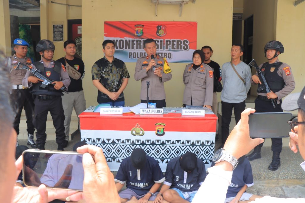 Polres Metro Polda lampung, Sat Reskrim Polres Metro gelar Konferensi pers terkait uangkap kasus tindak pidana percobaan pencurian disertai dengan kekerasan (Curas)dengan modus COD jual beli kendaraan di Polres Metro, Sabtu 04/11/2023.