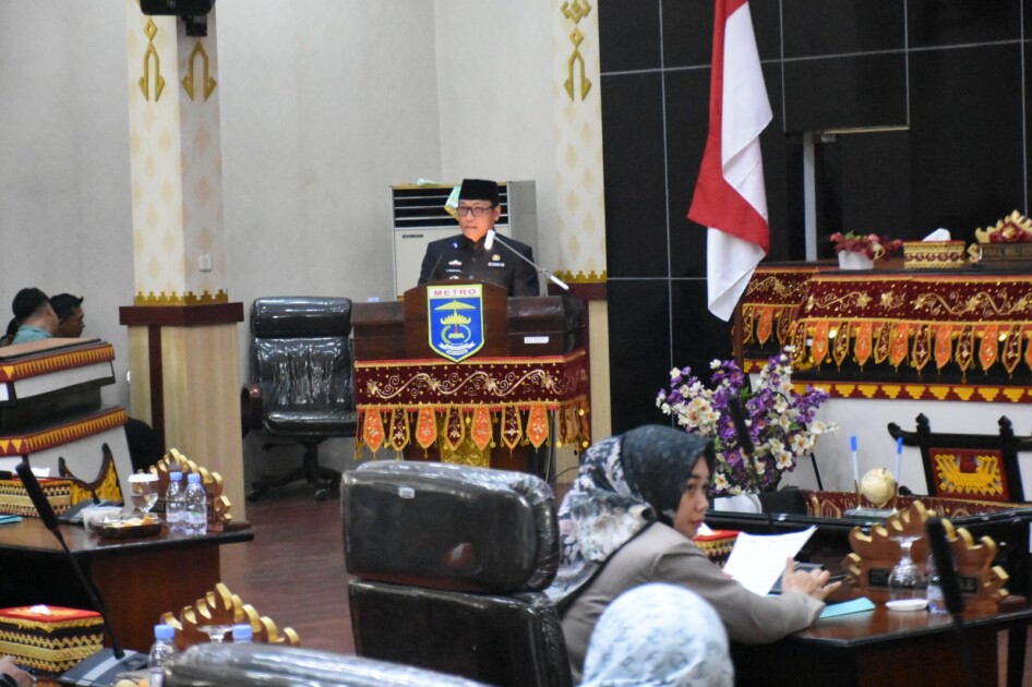 “Rapat Paripurna DPRD Kota Metro menyetujui bahwa Rancangan Peraturan Daerah tentang APBD Kota Metro Tahun 2024 disahkan menjadi Peraturan Daerah Kota Metro,” tuturnya.