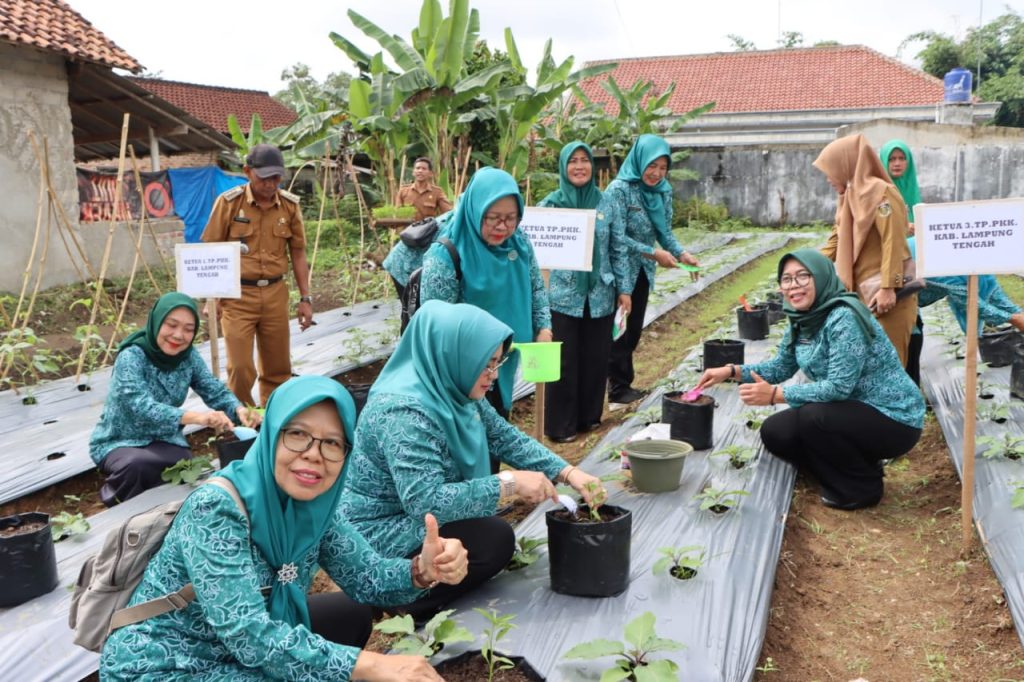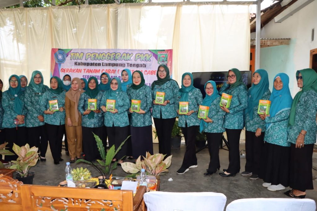 Trimurjo – Ketua TP PKK Kabupaten Lampung Tengah Hj. Mardiana Musa Ahmad menghadiri acara zoom dengan Ketua Umum TP PKK Pusat Hj. Iriana Joko Widodo sekaligus membuka kegiatan Gerakan Tanam Cabai (Gertam Cabai) serentak pada peringatan HKG PKK ke-52 tahun 2024 yang bertempat di Kampung Tempuran Kecamatan Trimurjo, Senin 04 Maret 2024. Dalam kegiatan tersebut selain Ketua TP PKK Kabupaten Lampung Tengah Hj. Mardiana Musa Ahmad hadir pula Ketua 2 TP PKK Kabupaten Lampung Tengah Ny. Armalia Kusuma Riyadi, Ketua 3 TP PKK Kabupaten Lampung Tengah Ny. Eni Adi Sriyono, Camat Trimurjo Suparyono, Ketua TP PKK Kecamatan Trimurjo, Pengurus TP PKK Kabupaten Lampung Tengah, Ketua TP PKK Kampung se-Kecamatan Trimurjo, penyuluh pertanian dan OPD terkait.Â