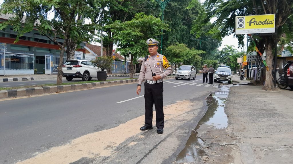 “Setelah itu kendaraannya pergi, rupanya kendaraan itu mengeluarkan oli. Jadi olinya itu tercecer sepanjang kurang lebih 100 meteran, maka kami dengan cepat langsung mengambil langkah untuk melakukan penimbunan menggunakan pasir,” jelas Kasat.