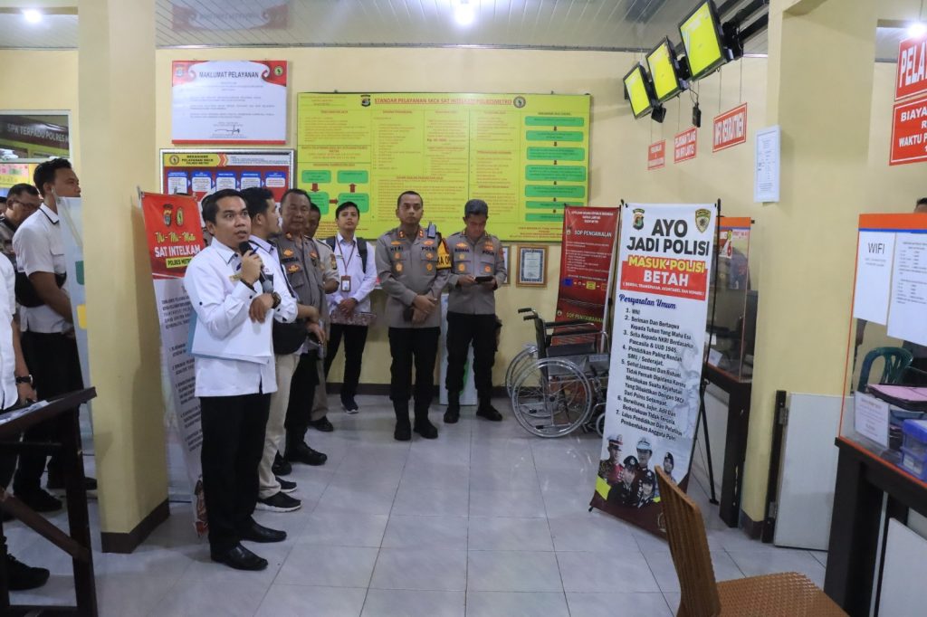 Polres Metro Polda Lampung, Itwasda Polda Lampung bersama Ombudsman RI Perwakilan Lampung melakukan kunjungan dalam rangka asistensi pelayanan publik Satu Atap Polres Metro, Senin (06/05/2024).