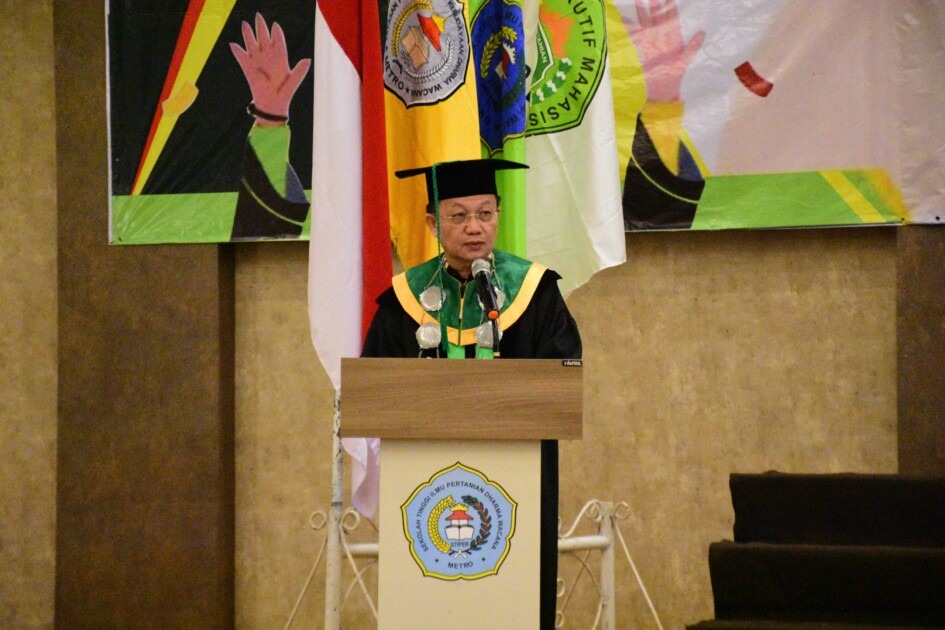 Wali Kota Metro Wahdi Siradjuddin menghadiri Wisuda Sarjana Pertanian Sekolah Tinggi Ilmu Pertanian (STIPER) Dharma Wacana Metro Tahun 2024 yang diadakan di Aidia Grande Hotel, Rabu (15/05/2024).