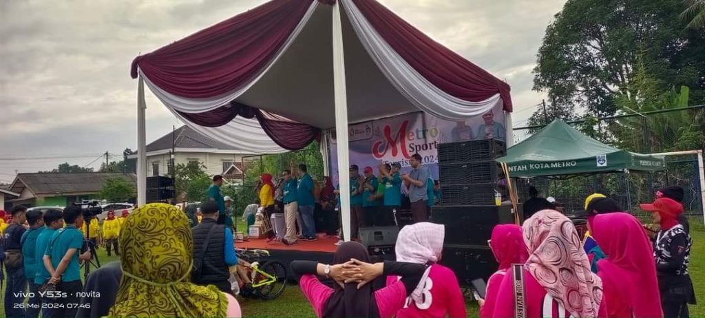 Hal ini disampaikan Walikota Metro dr. Wahdi Siradjuddin saat memberikan sambutan di kegiatan Metro Sport Tourism (MST) yang berlangsung di Lapangan Yosorejo Kecamatan Metro Timur, Minggu (26/05/2024).