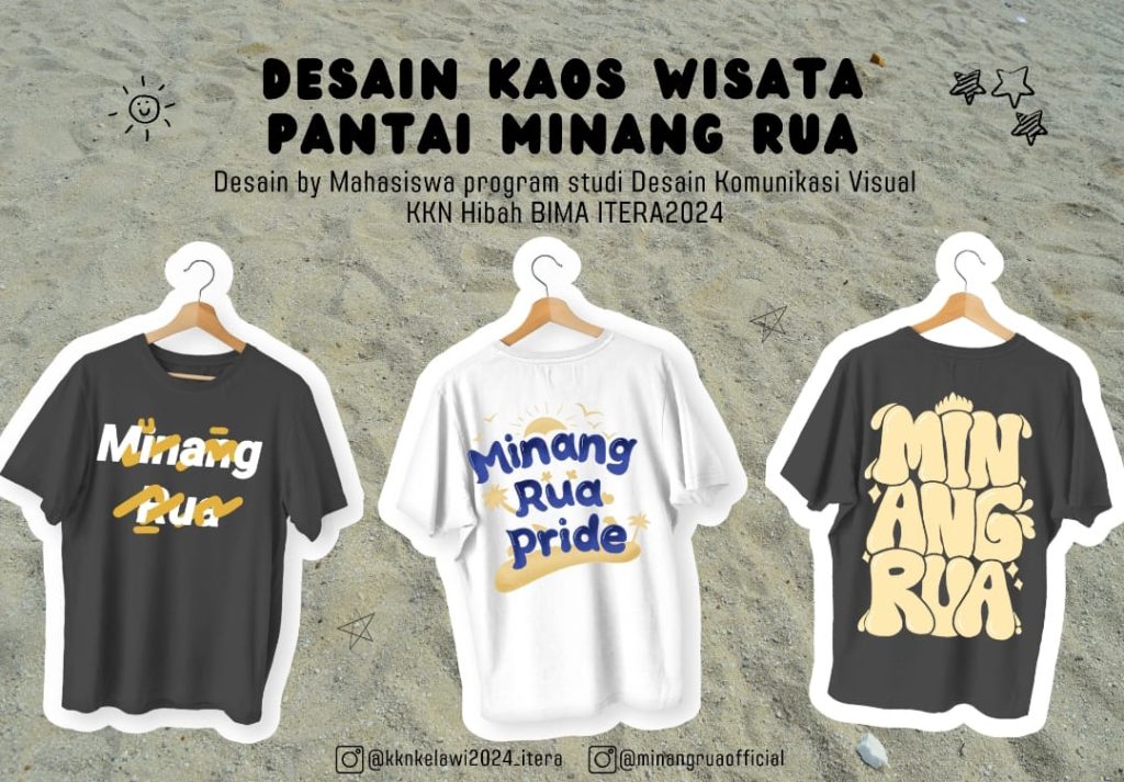 Lampung Selatan – Mahasiswa KKN Hibah Bima Kemendikbudristek ITERA 2024 dengan bangga mengumumkan peluncuran serangkaian cinderamata inovatif untuk mendukung wisata Pantai Minang Rua, Desa Kelawi. Proyek ini melibatkan pembuatan desain baru yang mencerminkan keindahan Pantai Minang Rua. Rancangan desain baru ini menggunakan elemen keindahan Pantai Minang Rua, seperti laut, matahari, dan fauna lokal yaitu penyu. ada juga desain dengan aksara Lampung yang mencerminkan bahwa Minang Rua berada di Lampung, lebih tepatnya di Lampung Selatan. Hal ini bertujuan untuk menciptakan produk yang tidak hanya fungsional tetapi juga mencerminkan khas Minang Rua, Sabtu 27/07/2024