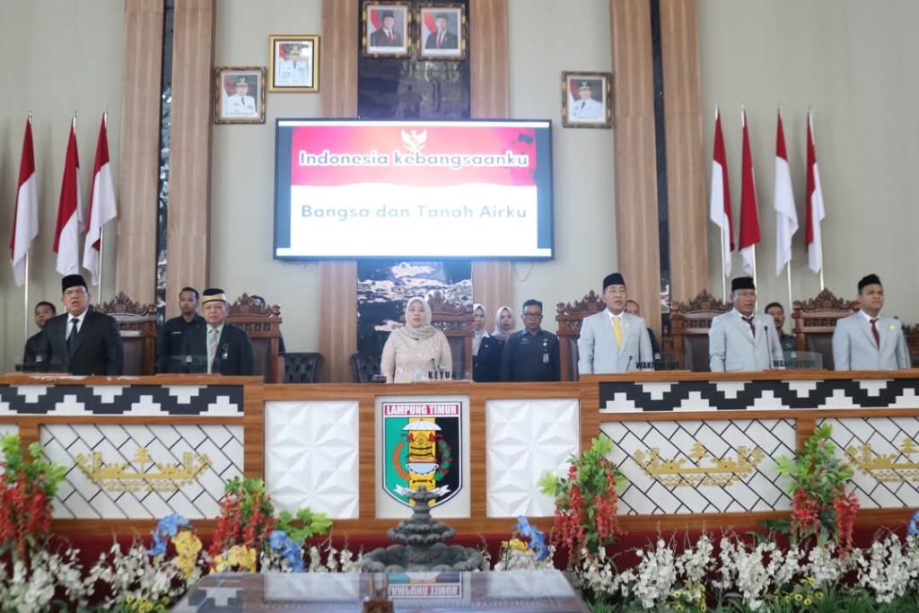 Lampung Timur – DPRD Kabupaten Lampung Timur menggelar Rapat Paripurna dengan agenda Pengumuman Pemberhentian Bupati dan Wakil Bupati hasil Pemilihan Kepala Daerah Tahun 2020 serta Penetapan Pasangan Calon Bupati dan Wakil Bupati Terpilih Tahun 2024.