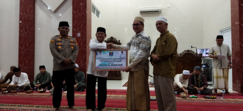 Tejo Agung – Di bulan ramadhan yang penuh keberkahan ini, Forkopimdo kota Metro bersama jajaran, Camat Metro Timur, Polsek Metro Timur dan lurah Se-Metro Timur, terus menebar kebaikan melalui momen safari ramadhan Di Masjid Al Muhajirin Perumnas Jurai Siwo Permai Kelurahan Tejo Agung Kecamatan Metro Timur Kota Metro, Rabo 12/03/2025,