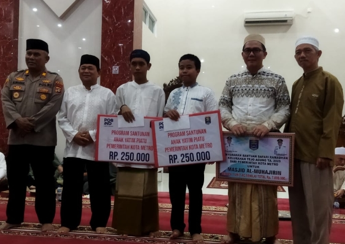 Di kesempatan yang sama melalui kegiatan safari ini Pemerintah Kota Metro kembali memberikan bantuan Ac kepada masjid Al Muhajirin. Selain itu juga pada pelaksanaan Safari Ramadhan akan diberikan santunan kepada 15 anak yatim piatu sekelurahan Tejo Agung Kecamatan Metro Timur mudah-mudahan bantuan dan santunan yang diberikan dapat memberikan manfaat yang seluas-luasnya bagi jamaah Masjid Al Muhajirin.