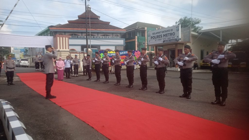 Metro, 22 April 2025 — Polres Metro menggelar upacara pisah sambut jabatan Kapolres Metro dari AKBP Heri Sulistyo Nugroho, S.I.K., M.I.K kepada AKBP Hangga Utama Darmawan, S.I.K pada hari Selasa (22/4). Acara berlangsung khidmat dan penuh makna, sebagai bentuk penghormatan terhadap dedikasi kepemimpinan yang telah berlangsung dan penyambutan pemimpin baru yang akan melanjutkan estafet pengabdian.